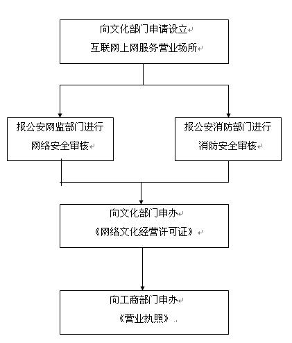 (二)申请人取得文化行政部门同意设立的核准文件后,应当向所在地县(市、区)级公安机关申请核发《消防安全检查意见书》和《网络安全管理软件安装证书》,并提交以下材料: